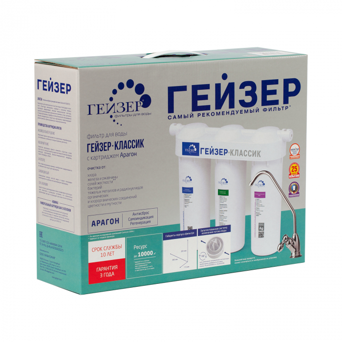 Фильтр Гейзер Классик для мягкой воды специально разработан для регионов с мягкой водой (низкий уровень минерализации). Важным свойством фильтра является самоиндикация — уменьшение напора в кране для чистой воды, фильтр сам подскажет, когда пришло время менять картриджи. Картридж Арагон-М можно многократно регенерировать (восстанавливать его свойства в домашних условиях), что позволит Вам сэкономить на покупке сменных картриджей.